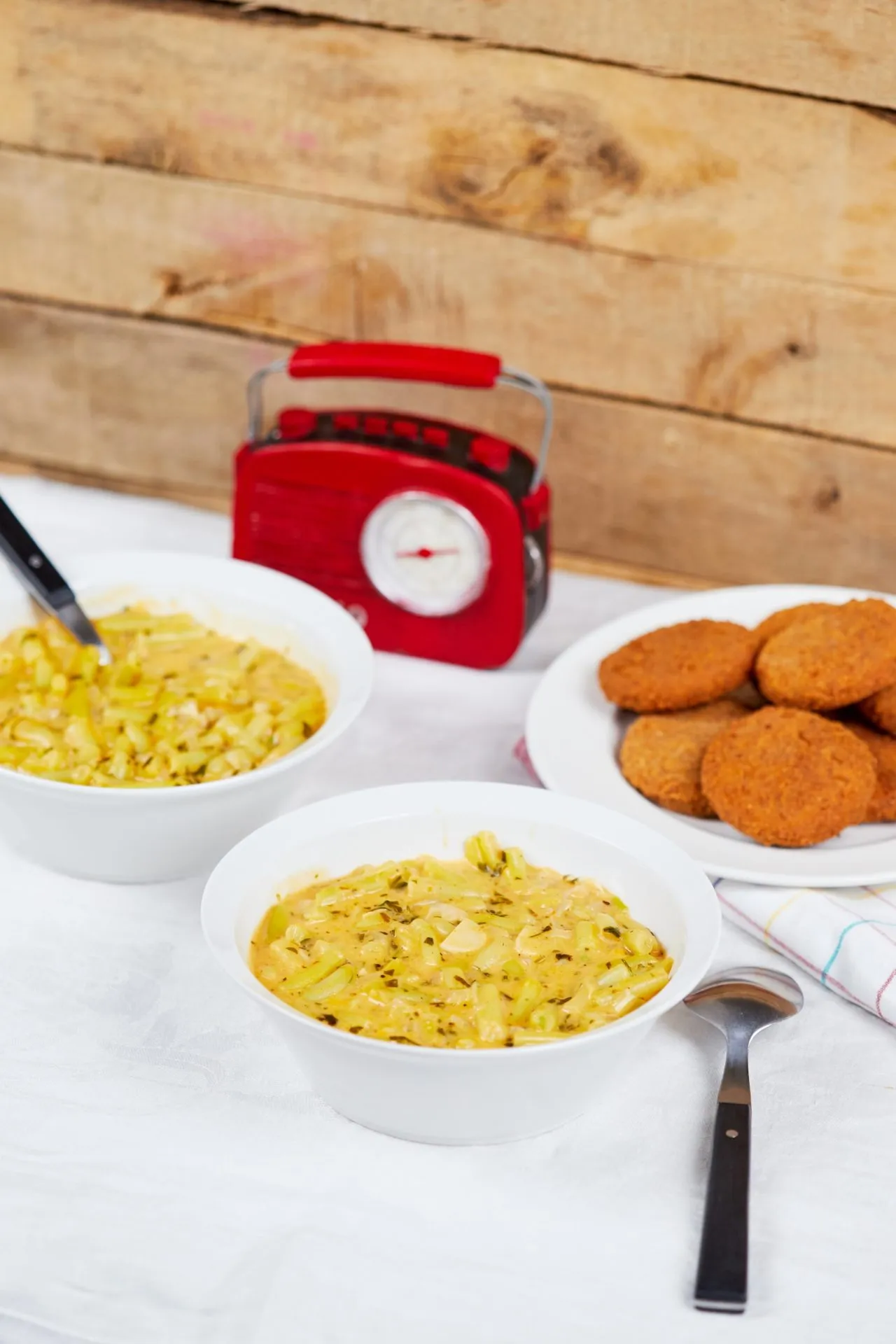 A párizsit kb. fél cm vastagra vágjuk, és a klasszikus liszt-tojás-zsemlemorzsában bebundázzuk, majd bő olajban kisütjük. A főzeléket ezzel tálaljuk.