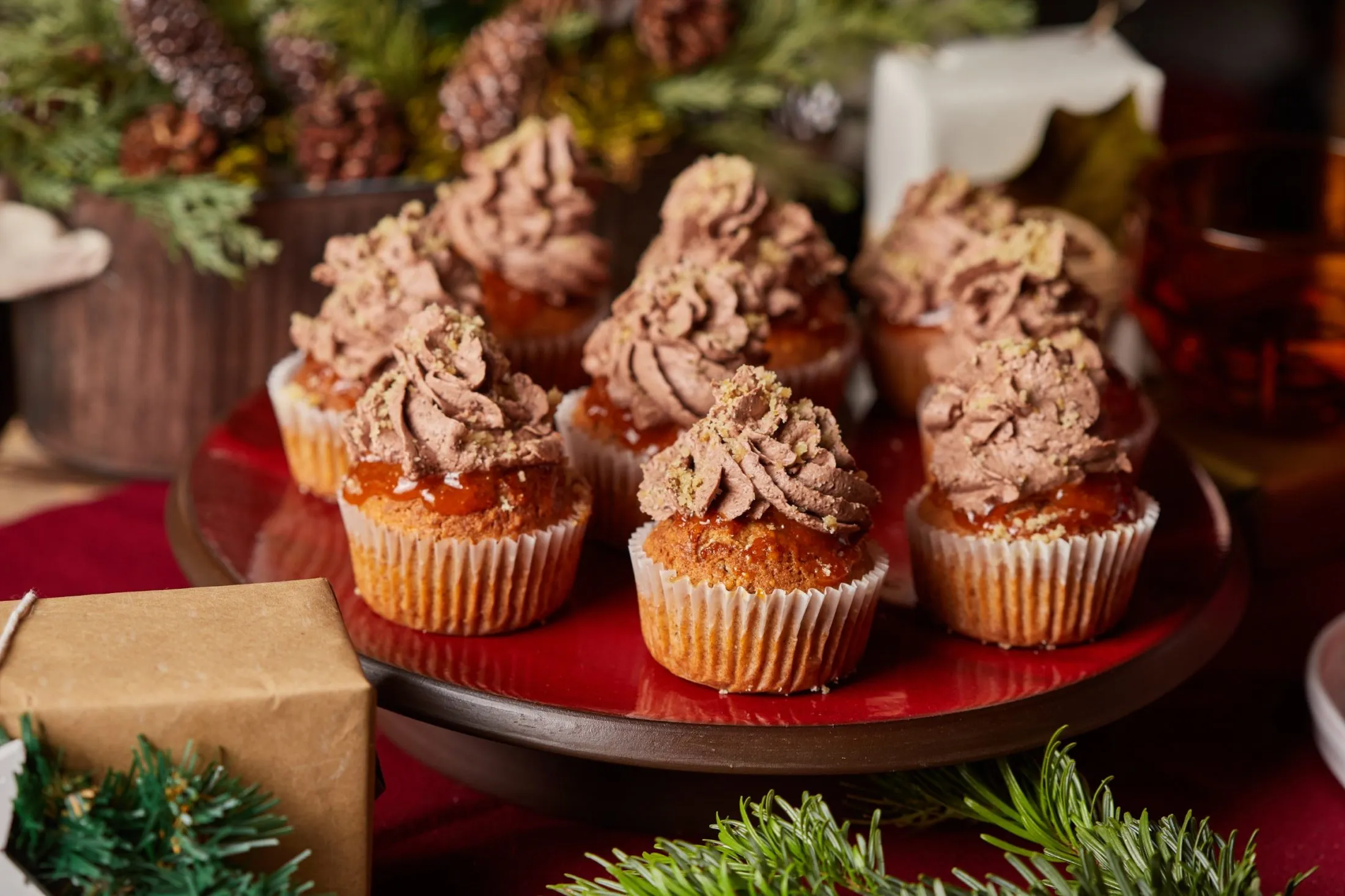 A mascarponét a tejszínnel 3-4 percig habosítjuk, majd összekeverjük a kihűlt olvasztott csokival és a kakaóporral. Habzsákba töltjük a krémet, a muffin tetejére nyomjuk, majd megszórjuk a dióval, és kész.