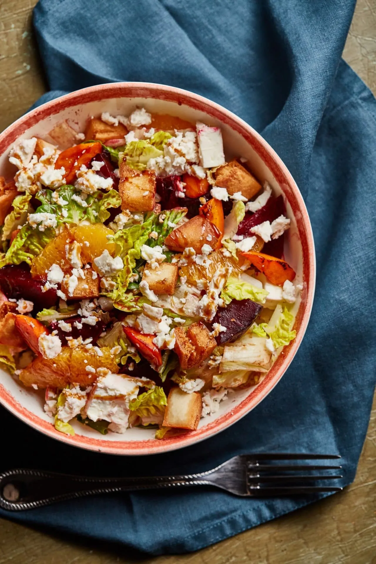 Kevés vajat melegítünk a serpenyőben, és először a répát, majd a cikkekre vágott céklát is megfuttatjuk rajta. Ha picit kihűlt, mehet is a tálba a salátához.
