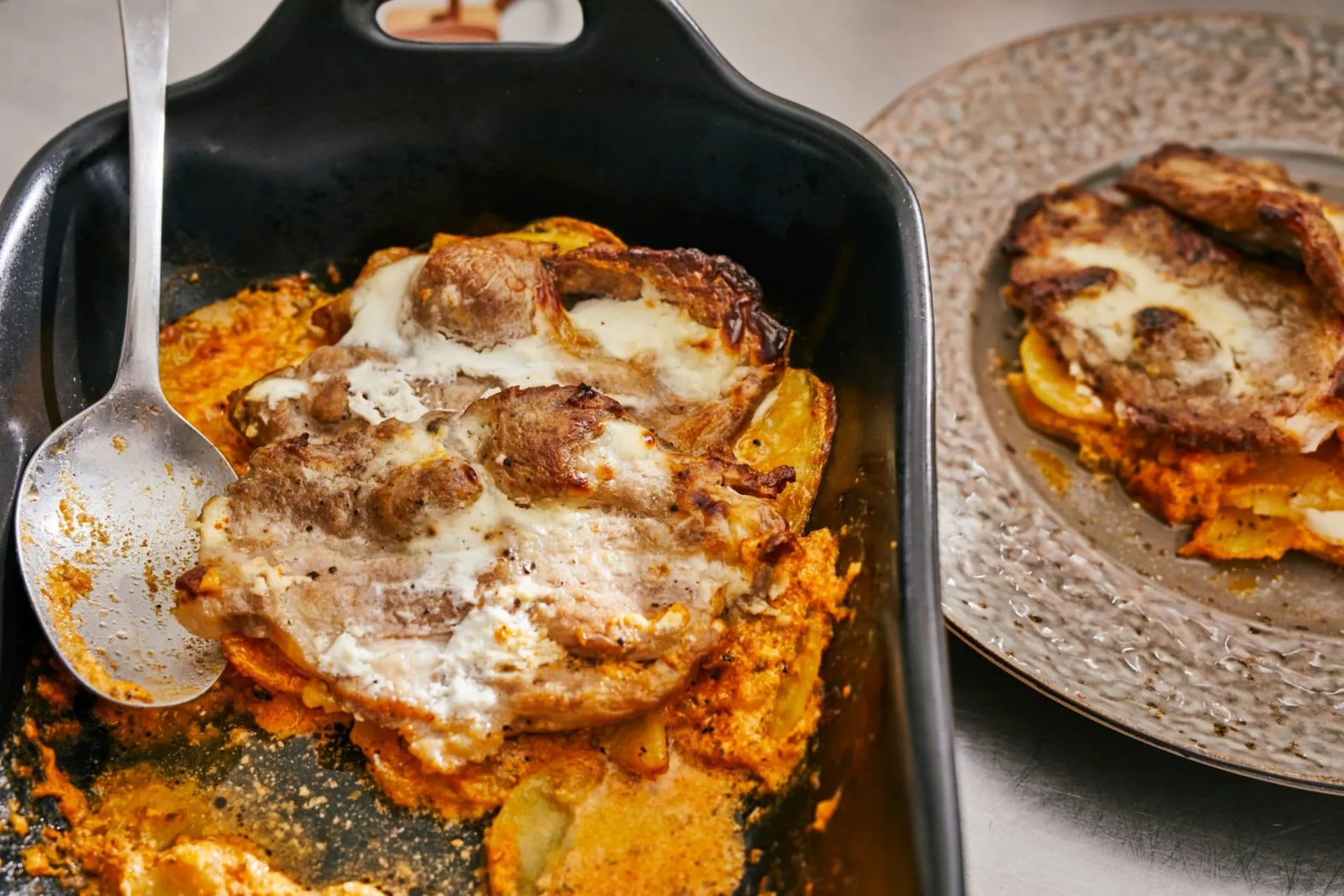 Fokhagymás-tejfölös sült tarja burgonyagratinnal