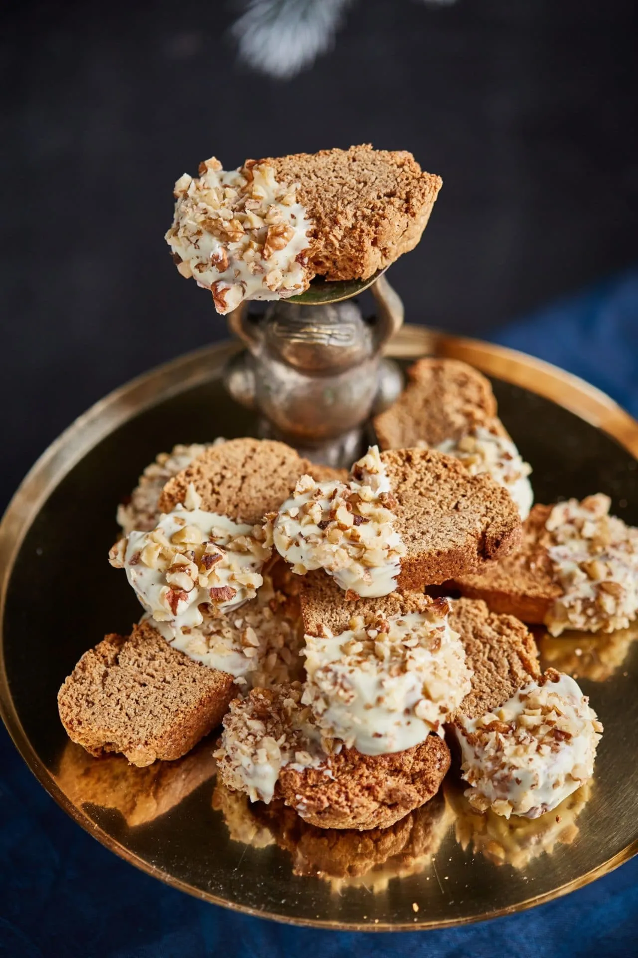 Kivesszük őket a sütőből, és egy kenyérvágó késsel, óvatosan ujjnyi vastag szeletekre vágjuk. Lefektetve visszarakjuk őket a tepsire, és kb. 10-12 perc alatt ropogósra sütjük.