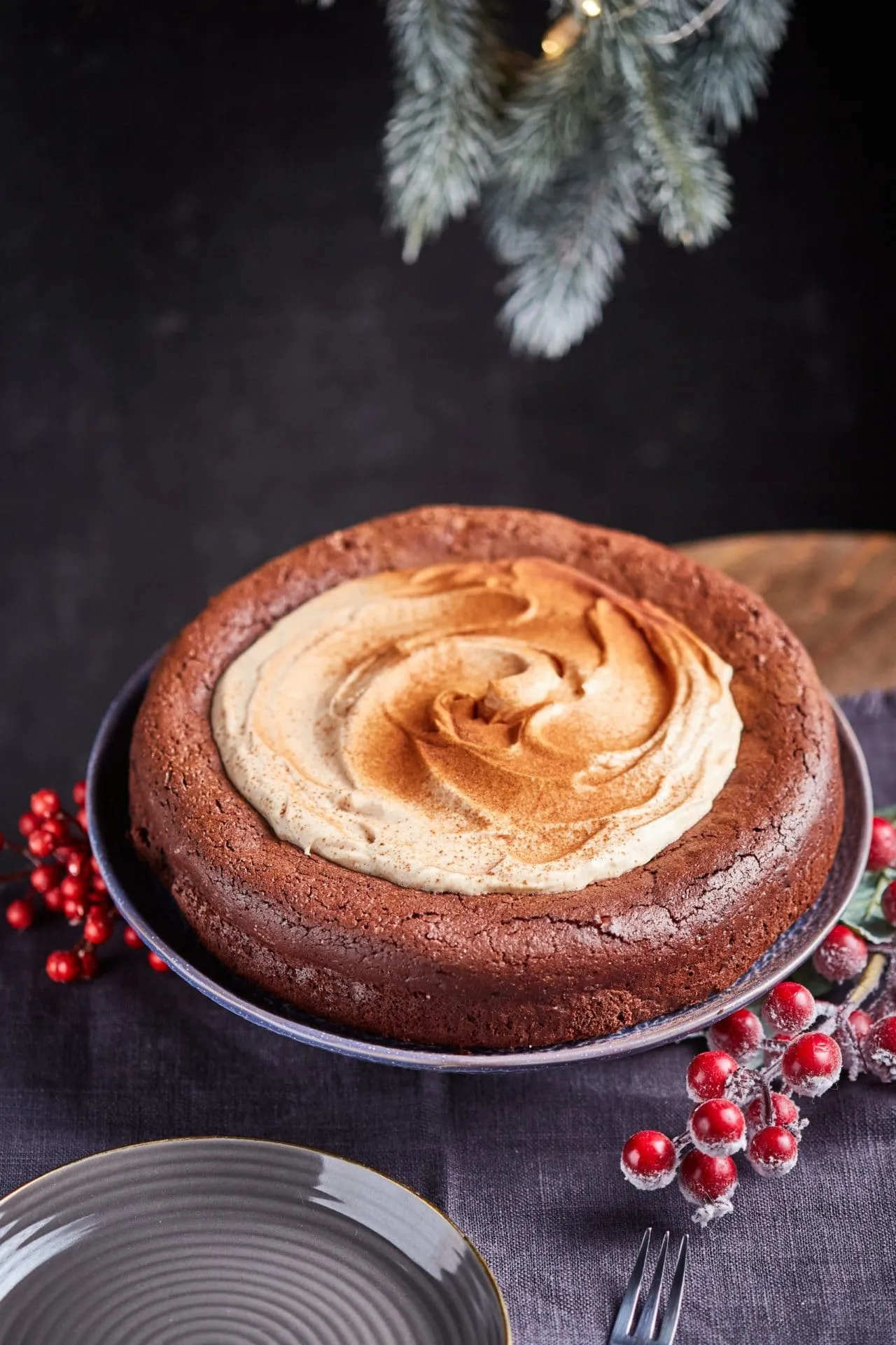 A mascarponét és a porcukrot egy robotgép segítségével kihabosítjuk, majd 1 adag eszpresszót öntünk bele, és elkeverjük. A krémünket a hűtőbe tesszük 30 percre, majd az időközben szoba-hőmérsékletűre hűlt tortánkra nyomjuk egy habzsák segítségével, de akár csak rá is kenhetjük, majd fahéjat szitálunk rá, és tálaljuk.