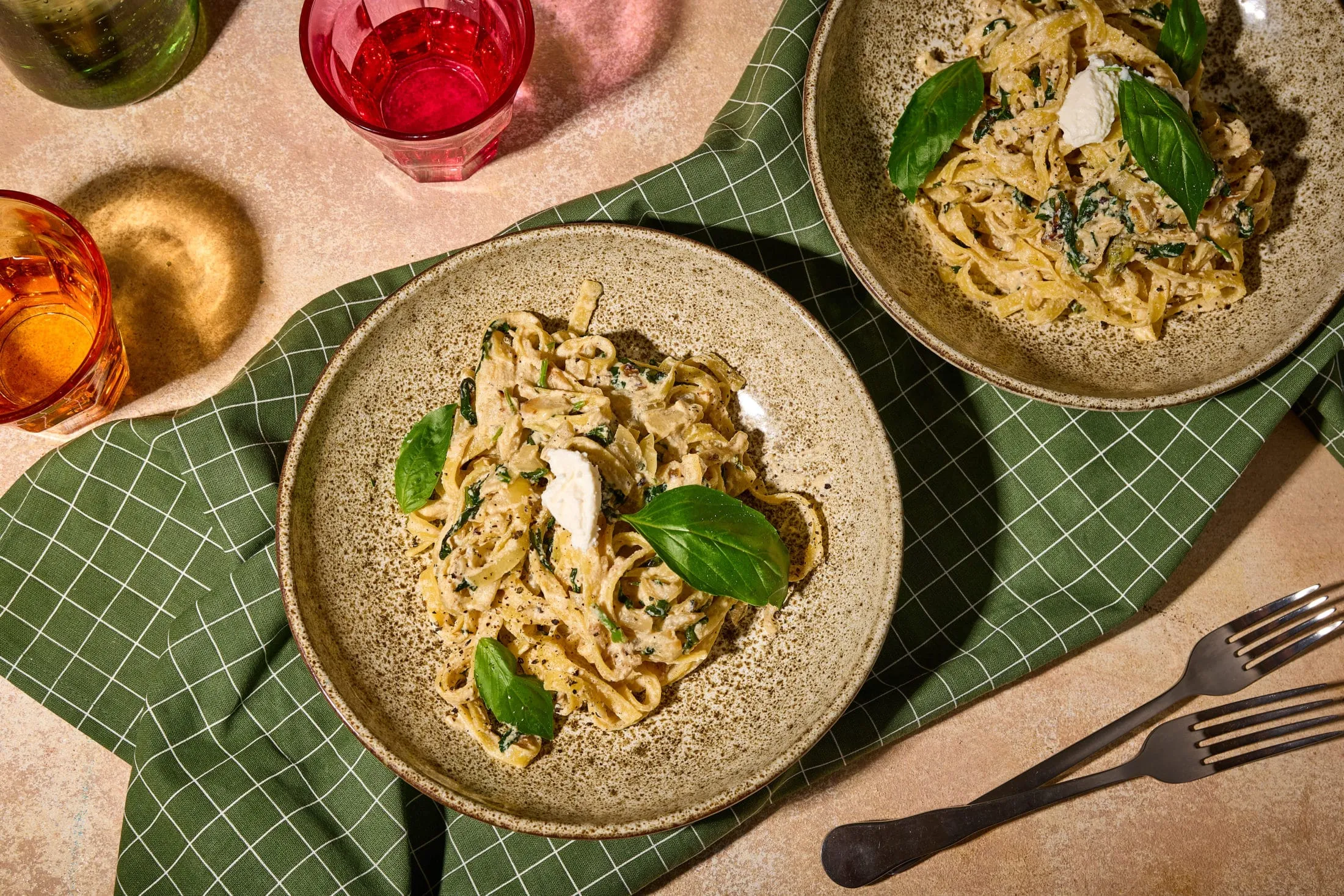 Mehet hozzá a ricotta és a tejszín is, alaposan elkeverjük, sózzuk és borsozzuk. Amikor megfőtt a tészta, leszűrjük és a ragunkhoz rakunk egy keveset a főzővízből. Mikor a ragu felforrt, levesszük a tűzről és összeforgatjuk a tésztával. Friss bazsalikomlevéllel és frissen őrölt borssal tálaljuk. Tényleg kevesebb egyszerű tésztareceptet találhattok ennél, ami egyben egy ízbomba is!