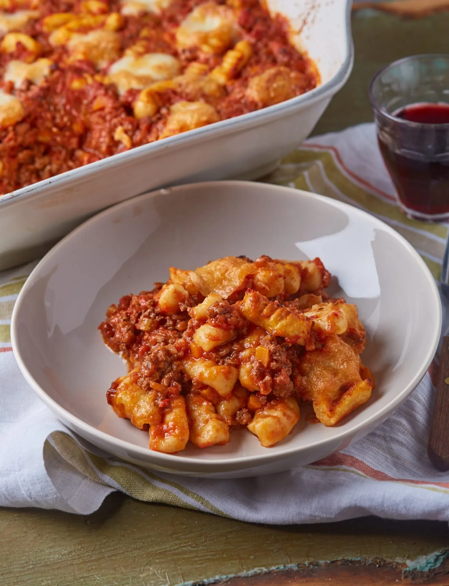 A nudlihoz a krumplit megmossuk, és mikróban 15 perc alatt készre pároljuk. Lehúzzuk a héját, majd áttörjük és hagyjuk kihűlni. Ha kihűlt, összekeverjük a többi hozzávalóval, enyhén lisztezett felületen gombóccá gyúrjuk, fóliába rakjuk, és legalább egy fél órát pihentetjük hűtőben. Ezután 8 egyenlő részre osztjuk, kb. 1 cm átmérőjű rudakat sodrunk és 1 cm-es darabokat vágunk le belőle, majd egy villán legörgetejük, hogy legyen egy kis erezete. Ezután gyöngyöző, sós vízben addig főzzük, amíg fel nem jön a víz tetejére, majd leszűrjük.