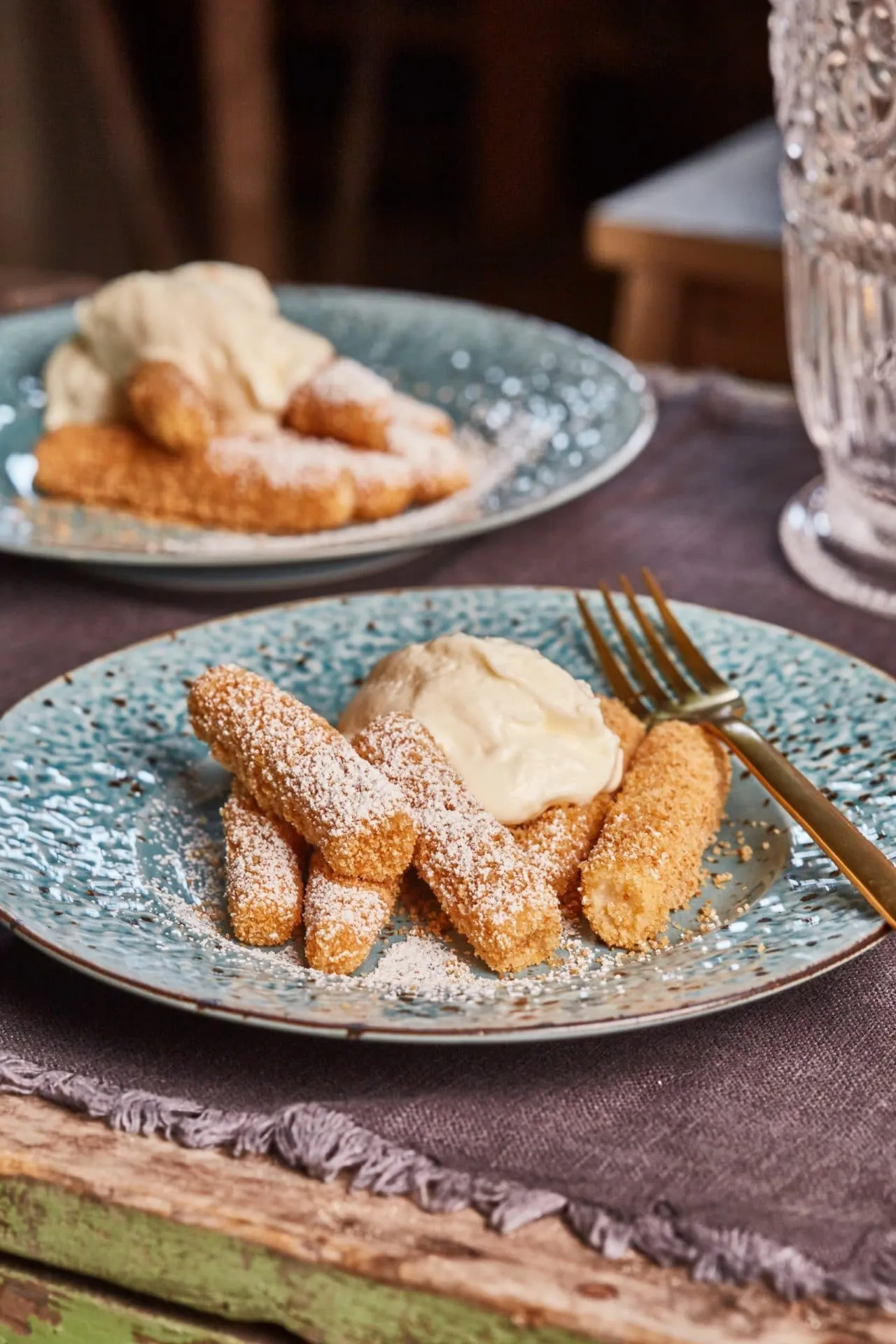 A nudlikat egy szűrőkanállal a kész morzsába szedjük, amiben alaposan átforgatjuk. Miután az összes nudlit kifőztük és morzsába forgattuk, elővesszük a hűtőből a bekötött tejfölhabot. Ezzel és ízlés szerint egy kis porcukorszórással tálaljuk.