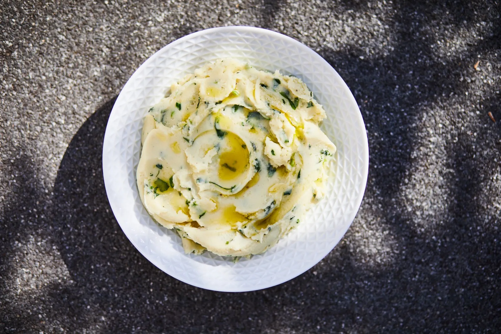 Mivel még tart a medvehagymaszezon, így a sima krumplipürét is feldobhatjuk vele. A rengeteg vajtól pedig szuper krémes lesz.
